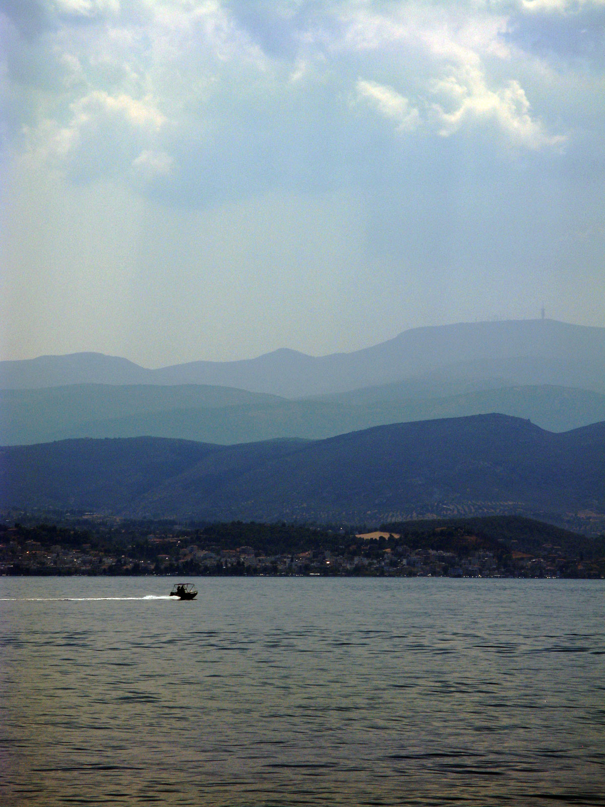 On the waters the boat gently a fly