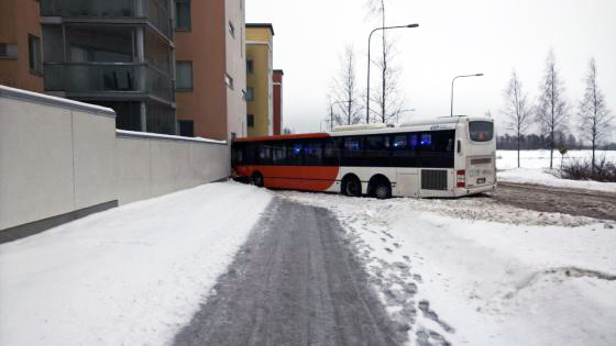 We are having the worst weather in Finland currently. Iced roads due to rain upon melted snow and rapid temperature rises from minus 28 degrees to + 2 degrees Celsius. This is causing what we Finns refer to as “skull weather” or in Finnish: “Pääkallokeli”. Yes, I know what you think; they have cold and snow there all year around. One could imagine they had gotten used to it and perfected the vehicles to run according. Alas no: Each year the snow “surprises” the drivers, train gears are frozen and heavy transports such as trucks and buses run amok on the roads.