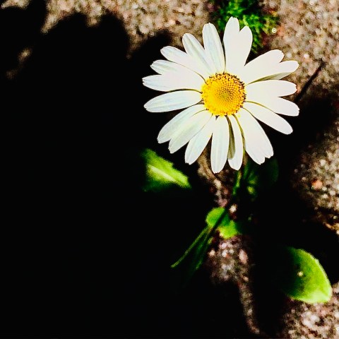 From the darkest of the dominating shadows, rising through the cracks as the thin rays of light it follows, finding finally a way towards the lights even if it had been a long and difficult struggle. As nowhere to turn to for help, only with its own self preservation and wit, did it manage to survive the harshness of said darkness, where the lesser ones would have called out yelp in the overall process. But surely as the day is filled with the sun and the night is lit with the moon and the stars, this tiny pretty thing, managed its way through the small cracks to twinge. And now, standing proud and tall, despite the delicate frame, it will never be the same for this courageous and feisty flower, as now it finally had its taste of power. Blooming against and over all the odds, who had tried and taken their evil shots, trying to suffocate the one, redeemed to become nothing and none as there were others more deserving, more pretty, more of everything the tiny thing was not. But now, here it is, standing pretty over those who never it chose. But it does not care about them odds, not anymore, as it scored, big time, hovering, even towering over them all.