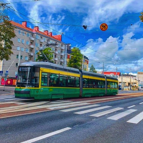 The old school electrical cart, which well, in most greatly stocked cities can be found, rolling there on their tracks close to the ground, and that is the safest way to ride, with kind of a pride, on this green and funky and multi-wheeled car of a thing, a tram to as they call it here, up north.
