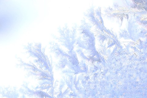 The artwork made by a winter’s storm onto the glass of the window quite worn