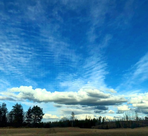The clouds painted the blue skies