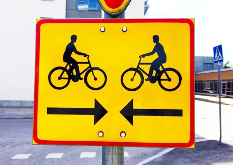 As two bicyclists are gliding