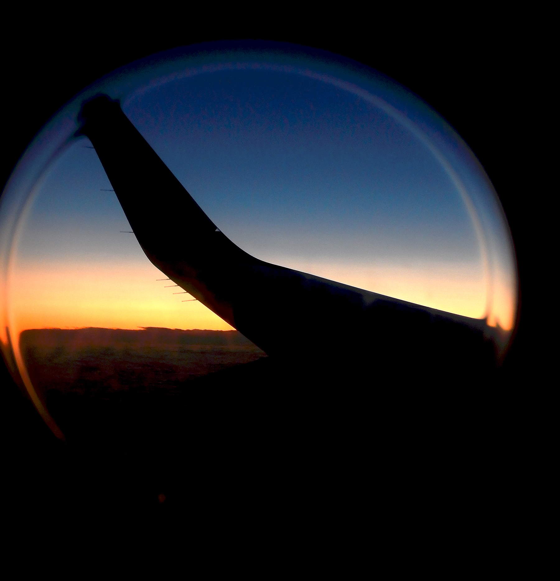 “The looking glass of the world below as seen through the very small window of an airplane mid-flight” Gun Roswell