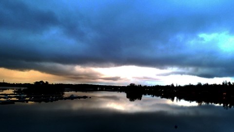 The sun setting over the open waters